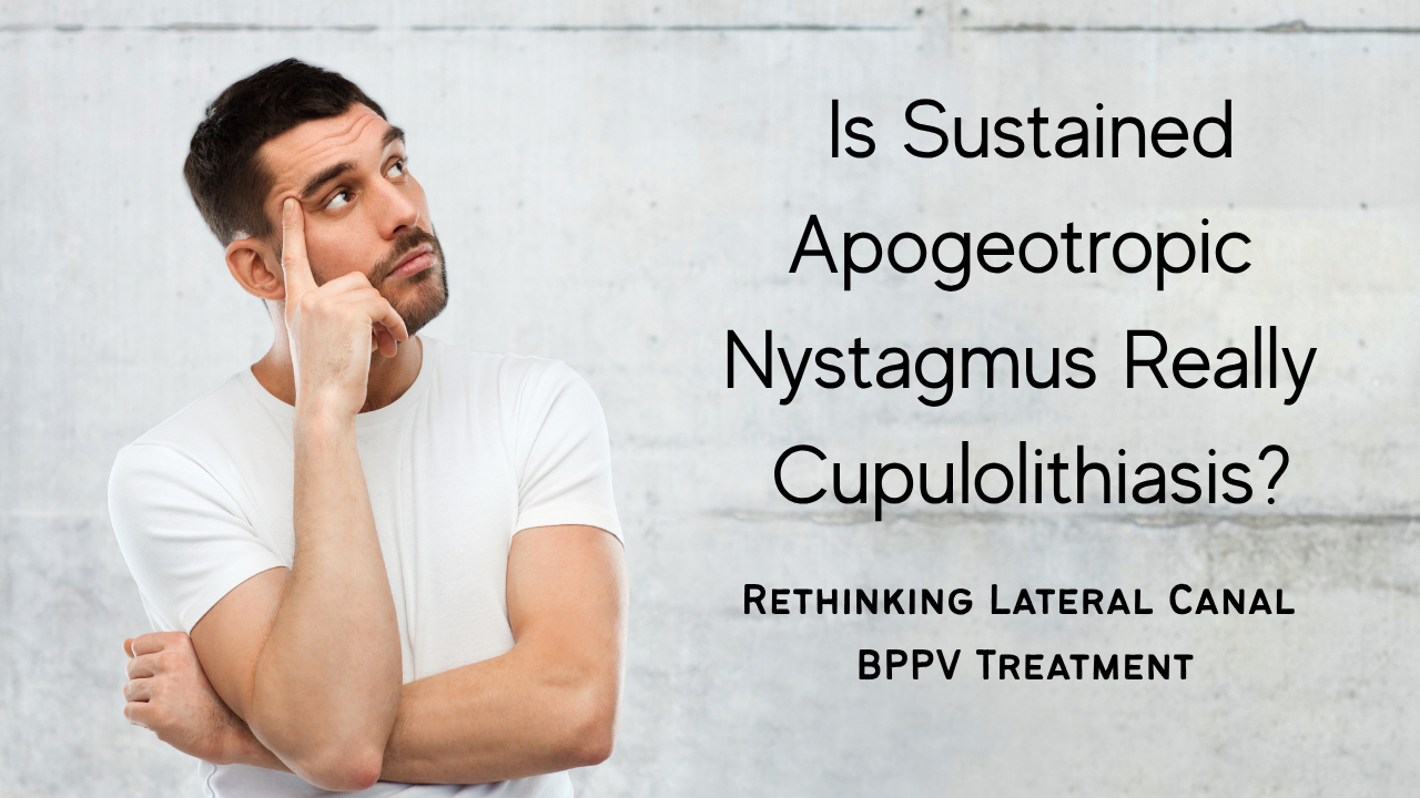 Most of us were taught and continue to be taught that sustained apogeotropic nystagmus indicates cupulolithiasis when the lateral canal is involved.